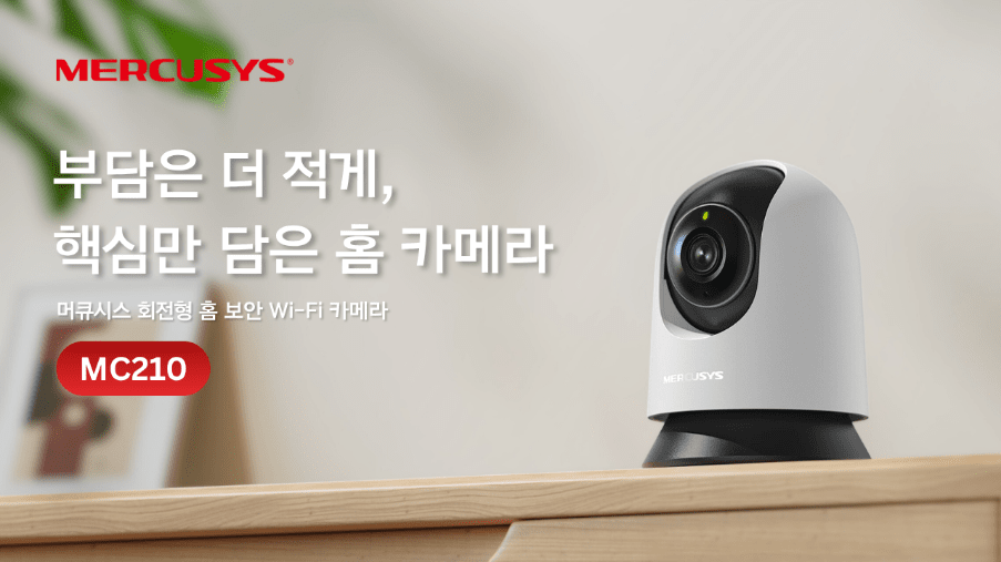 [아이티비즈 글로벌 네트워크 장비 전문 브랜드 머큐시스는 2K 300만 화소 고화질 영상과 스마트 감지 기능을 탑재한 회전형 홈 보안 카메라 ‘MC210’을 국내에 출시했다고 22일 밝혔다.