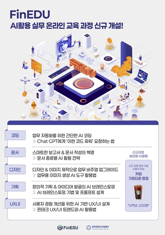 한국핀테크지원센터(이하 센터)가 생성형 AI를 활용한 실무 역량 강화를 통한 전문인력 양성을 위해 총 5개의 실습 중심 온라인 교육 과정을 새롭게 개발해 지원한다고 20일 밝혔다.